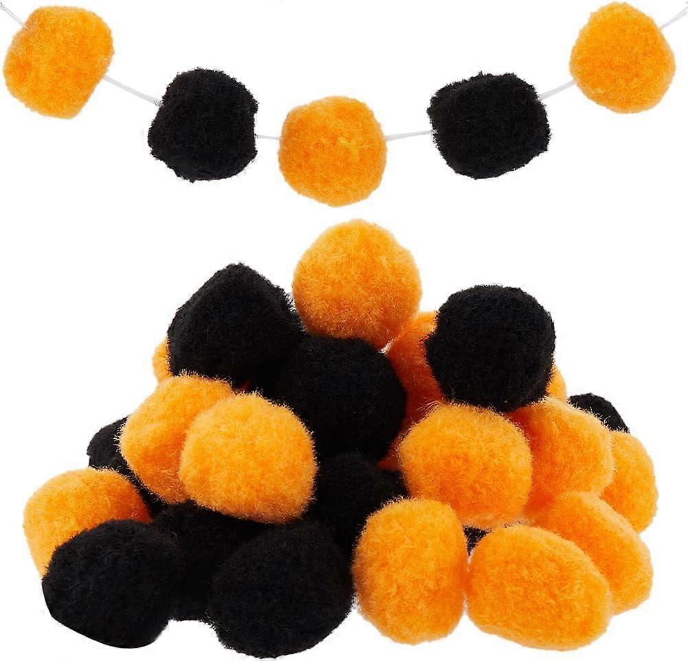 1 Box 100Pcs 30mm Halloween Pom Poms, Assorted Orange Black Metallic Yarn Puff Balls for DIY Crafts Decor, Compatible with Holiday Party Supplies