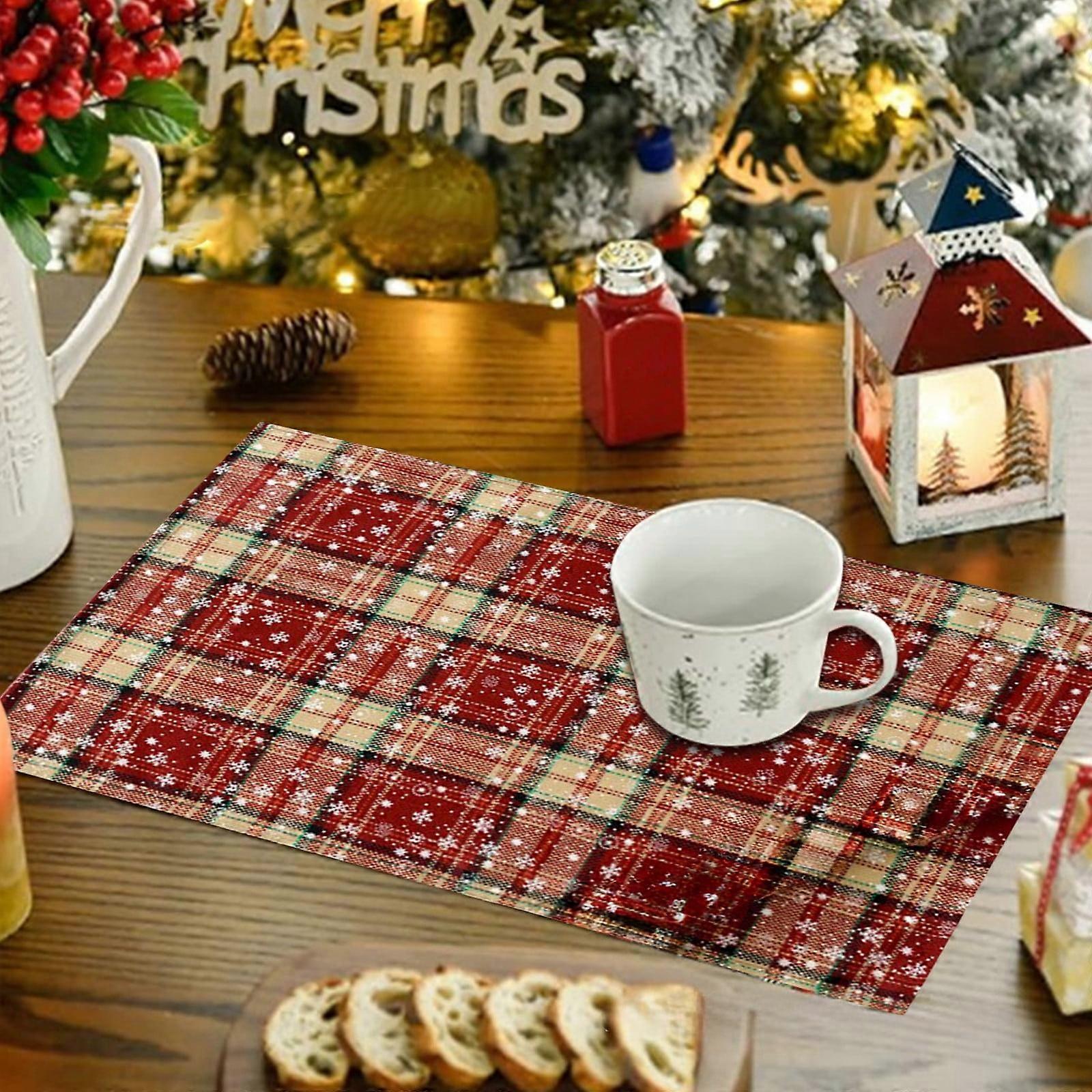 Quinlirra Christmas Placemats, Buffalo Checkered Tartan Table Mats, Heat Resistant & Washable, Holiday Dining Decor