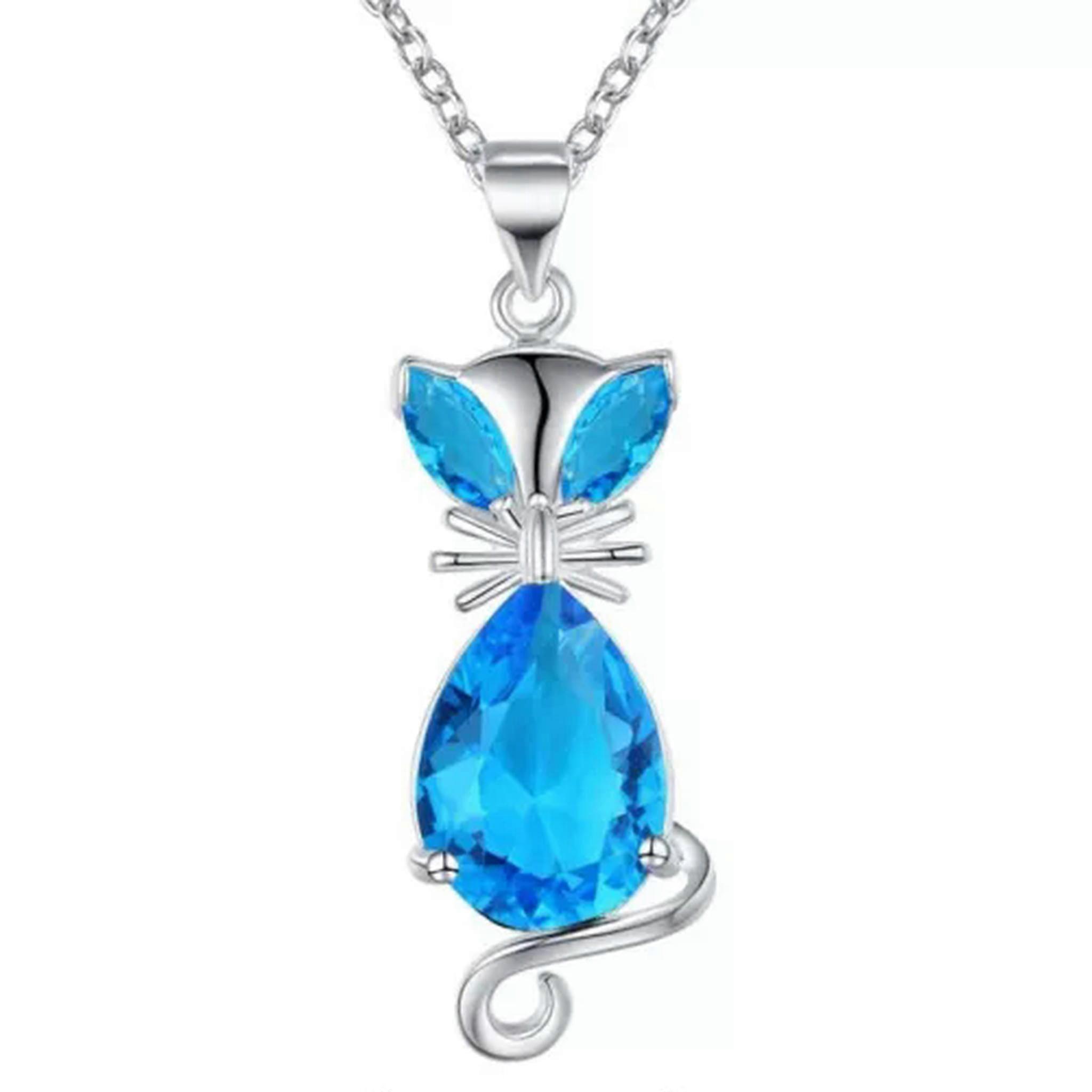 RSAMD 925 sterling Silver Necklace Beautiful crystal fox pendant woman Fashion Jewelry-Blue