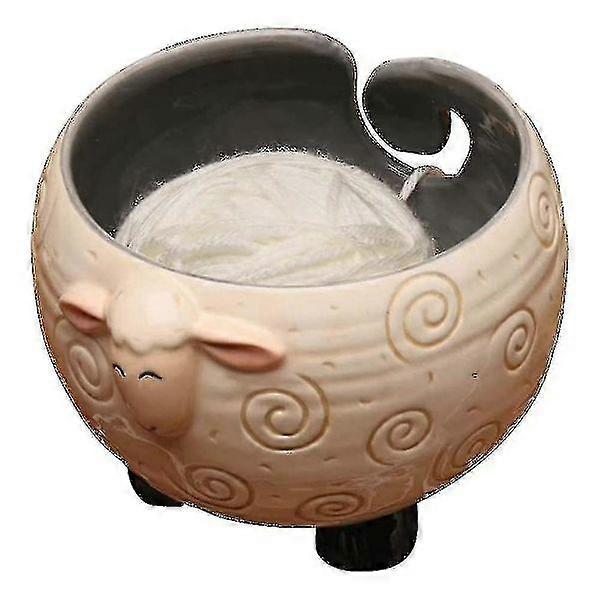 Sleepy Sheep Ceramic Yarn Bowl Knitting Bowl - Holds Ball of Yarn for Free Needlework, 6 inches WXH