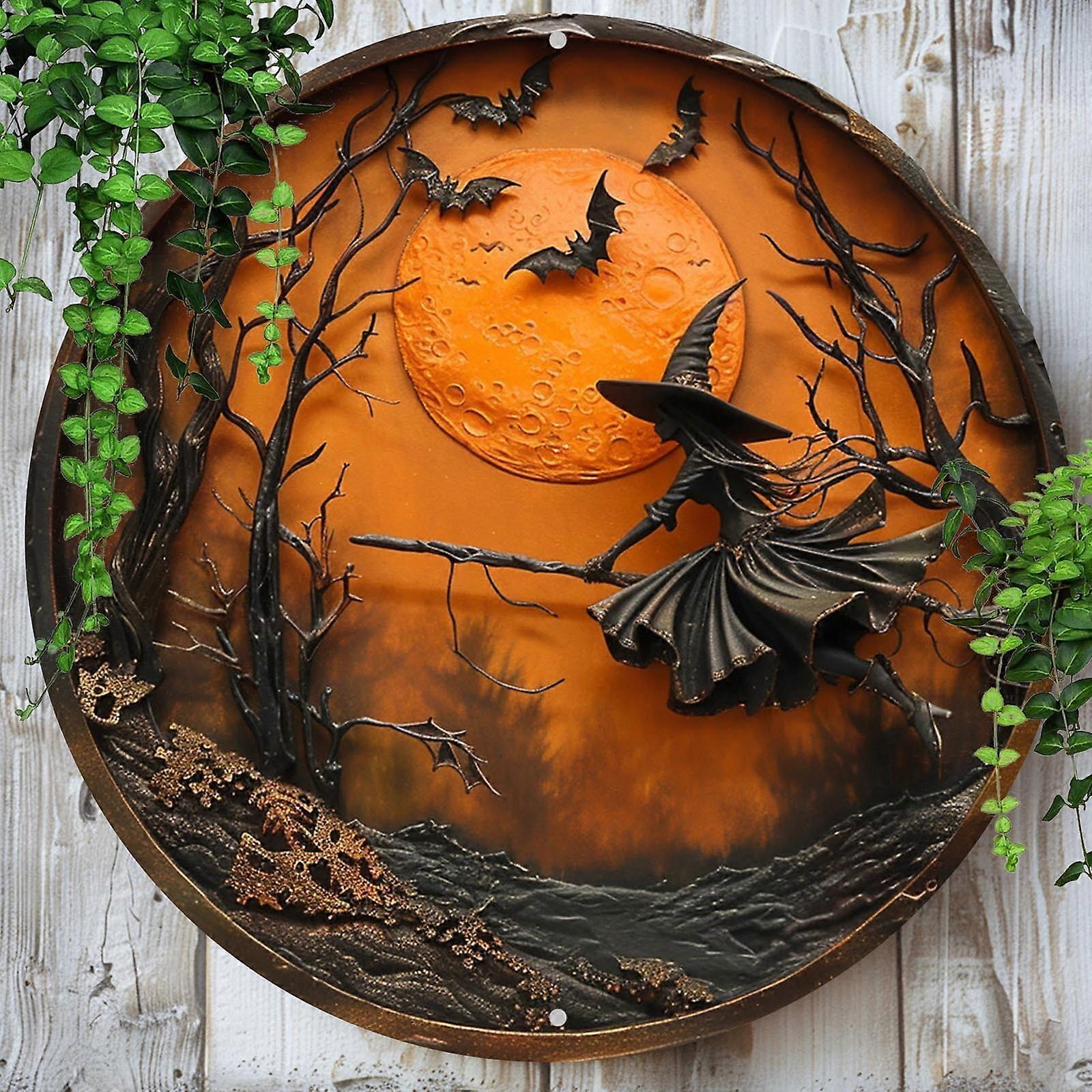 Replio Witch On Aluminum Wall Art Classic Round Metal Sign Multipurpose Decor For Home & Party 2D Home decor