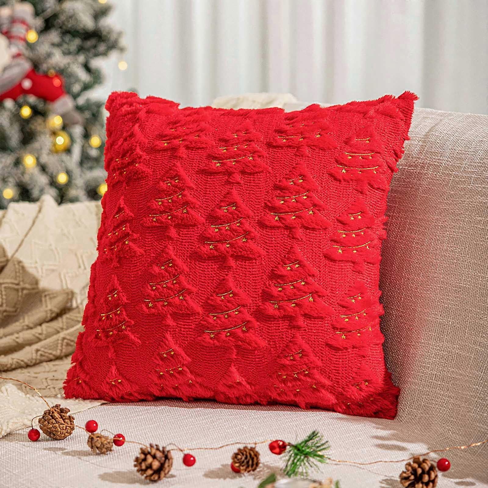 Cailmei Christmas Lantern Embroidery Pillow Cover American Retro Living Room Sofa Pillow Cushion Christmas Home Decoration Red Free Size