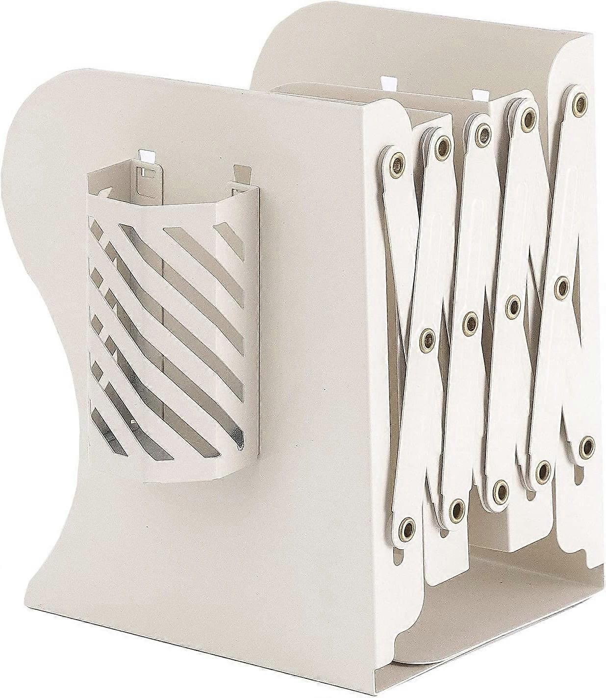 Adjustable Bookends, Happon Metal Book Ends for Heavy Book Holder Heavy Duty Bookends Nonskid Bookcase Desktop Book Organizer Binder Holder (White)
