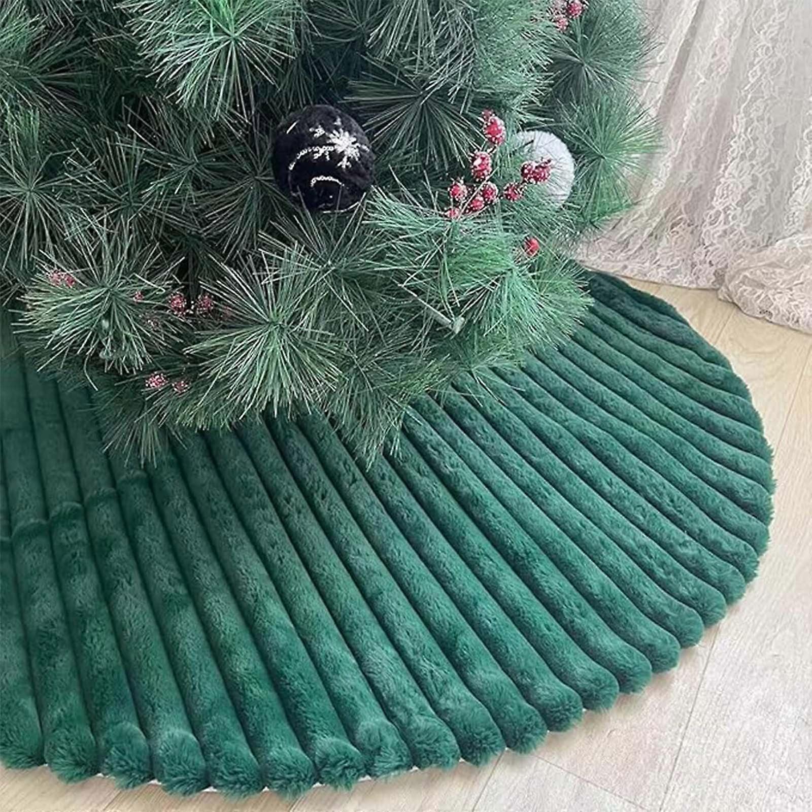 Christmas Tree Skirts Green Faux Fur Plush Velvet Fluffy Xmas Tree Skirt for Merry Christmas Holiday Party Christmas Tree Indoor Home Decorations