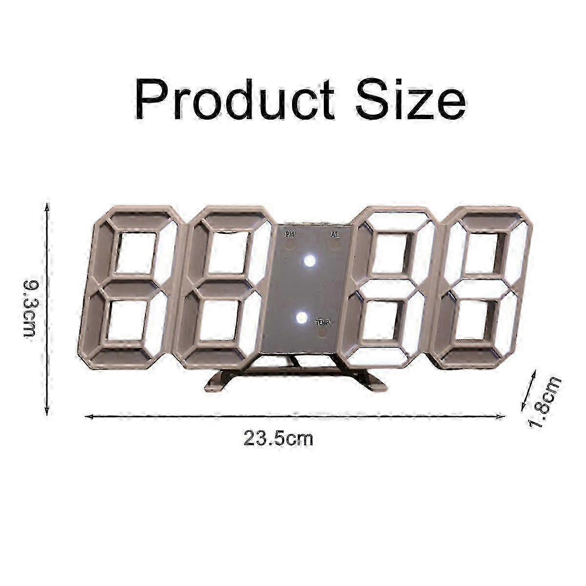 LED Digital Desk Alarm Clock Silent 3D Digital Wall Clock Desktopfor Living Room Bedroom White Frame and White Character w