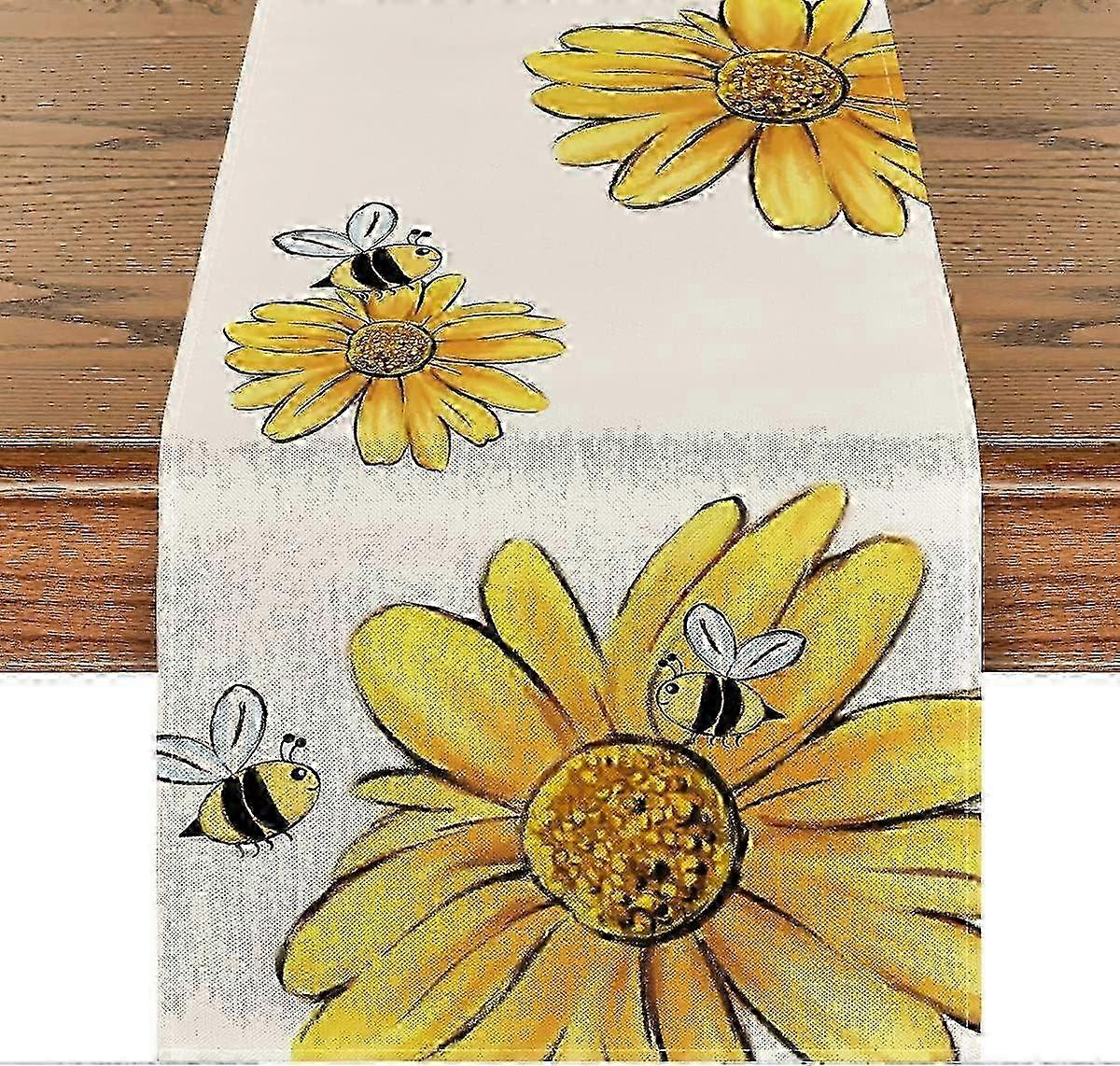 Bee Sunflower Summer Table Runner, Seasonal Spring Flowers Kitchen Dining Table Decoration for Home Party Decor w