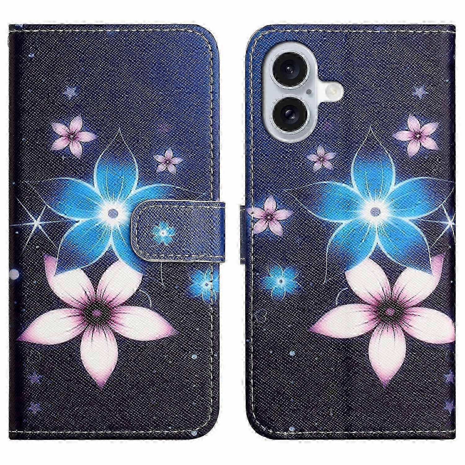For iPhone 17 Case Pattern Print PU Leather Wallet Phone Cover Cross Texture - Blue Flower w