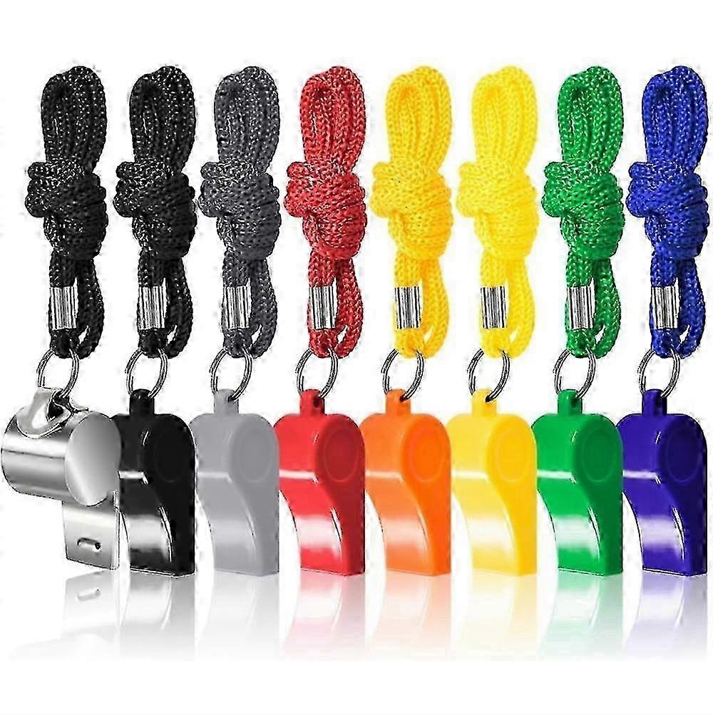 NOGIS 7 Pack Plastic Whistles with Lanyards + 1 Stainless Steel, Colorful for Football, Sports, Lifeguards - Multi-Color w