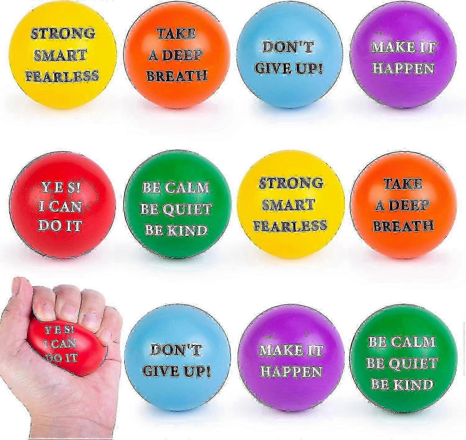 Motivational Stress Balls, Set of 12 Foam Balls with Inspirational Quotes w