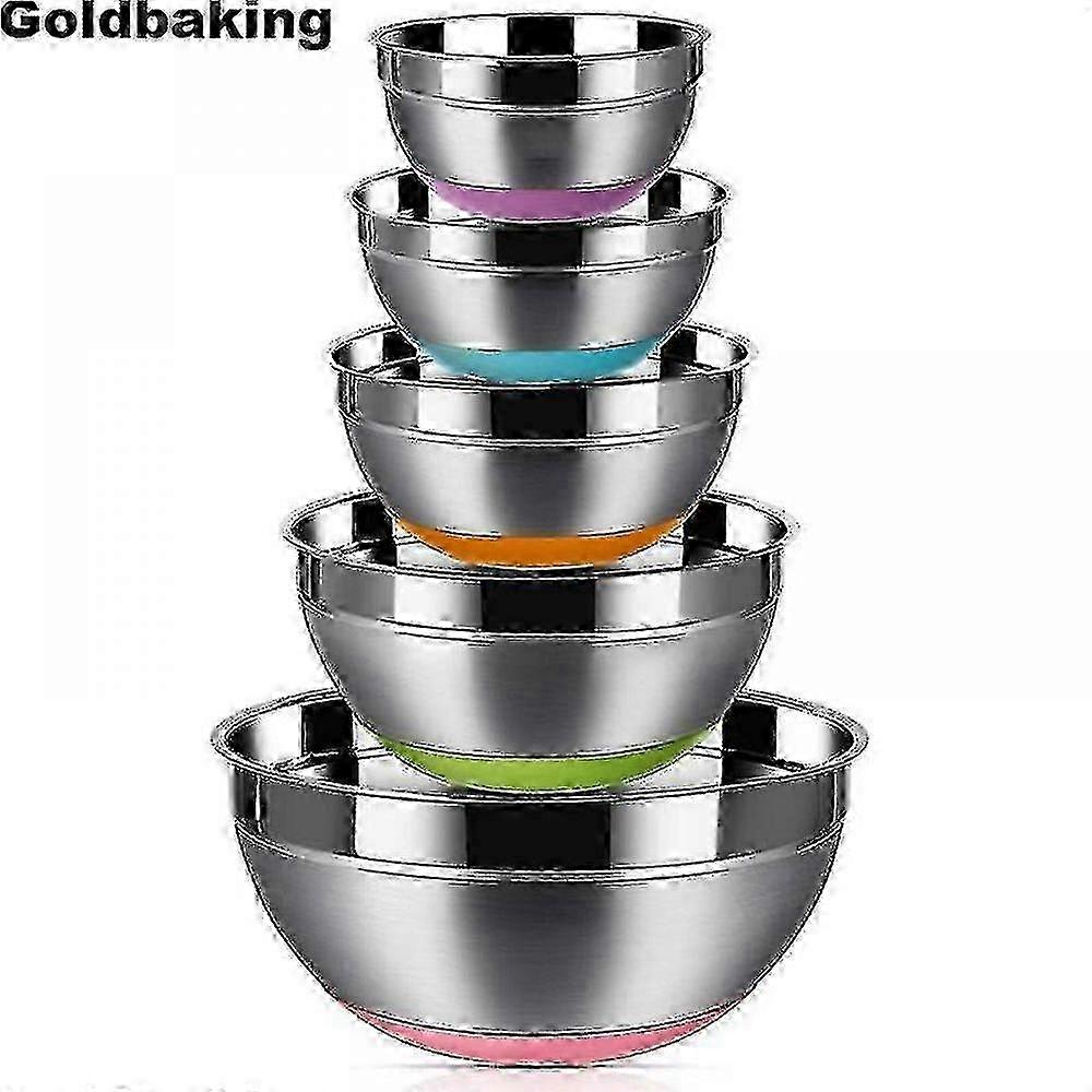 Stainless Steel Mixing Bowls (set Of 5) Silicone Bottom Nesting Storage Salad Bowls Meal Mixing w