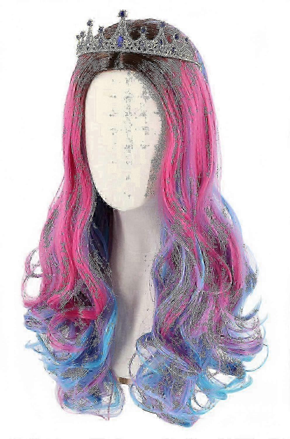 JUSCH Wekity Audrey Wig and Crown for Kids Girls Long Wavy Pink Blue Wig,WZ-1251 w