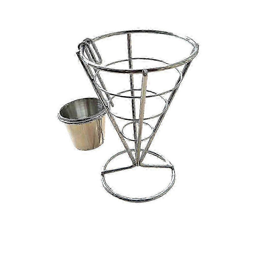 2PCS Fries Foods Stand Holder French Fry Chips Cone Metal Wire Basket with Sauce Dippers w