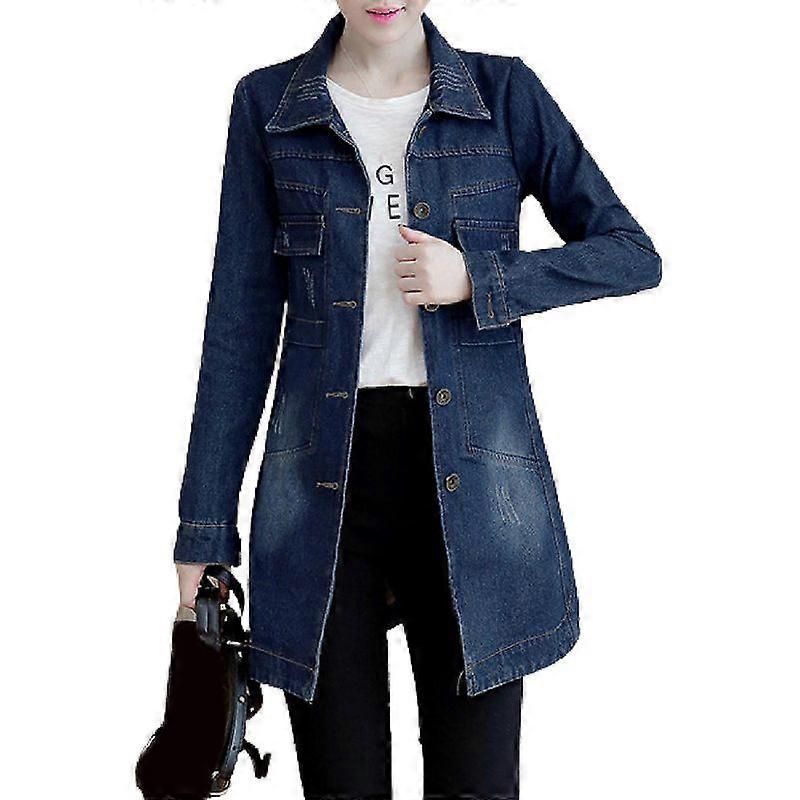 Luxora Turn-Down Collar Flap Pockets Denim Jacket Shrink Resistant Irregular Hem Long Women Coat Streetwear
