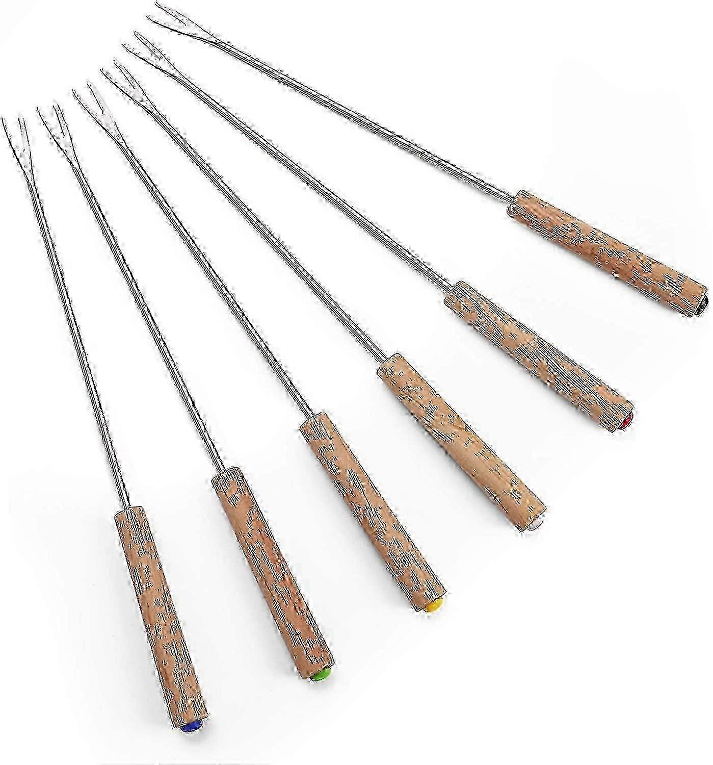 Stainless Steel Fondue Fork Heat Resistant Wooden Handle 9.5" - 6 Pieces w