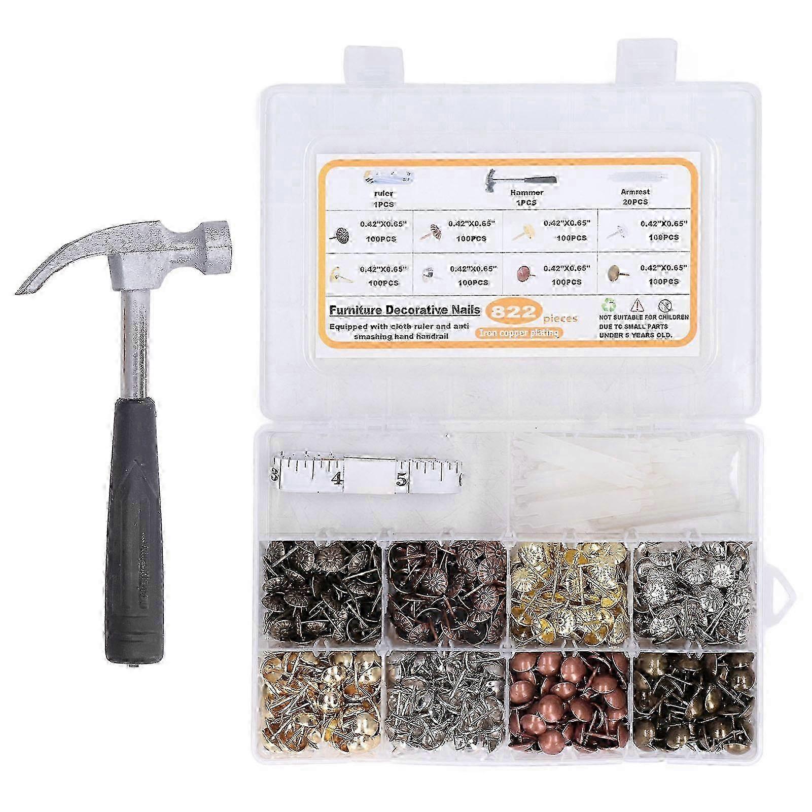 822 Pcs Upholstery Tack 8 Colour Carbon Steel Furniture Decorative Nail with Cloth Ruler Hammer Bracket w