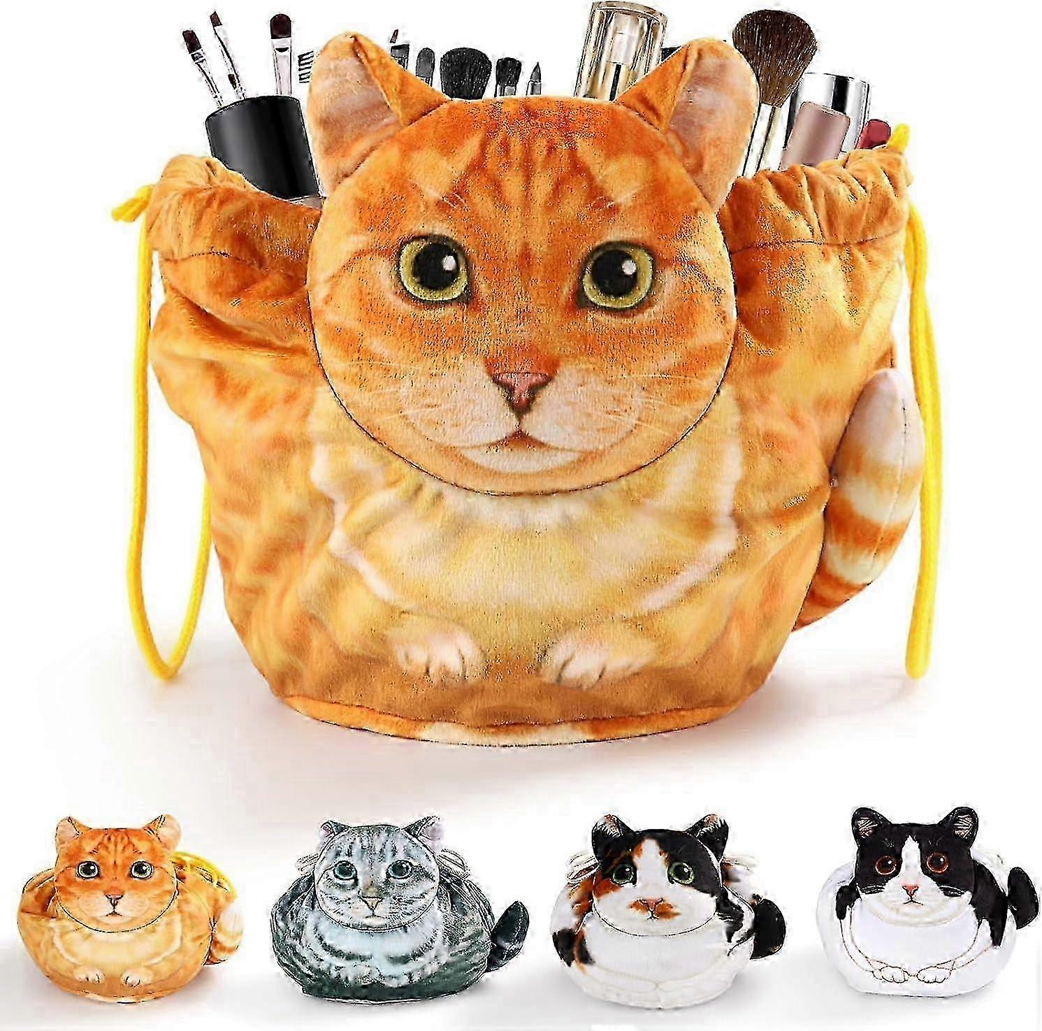 Cat Drawstring Makeup Bag, Flat Lay Make Up Bag, Portable Travel Cosmetic Bag Storage Organiser w