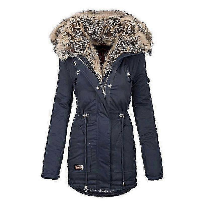 Womens Hooded Fleece Line Coats Parkas Faux Fur Jackets with Pockets w