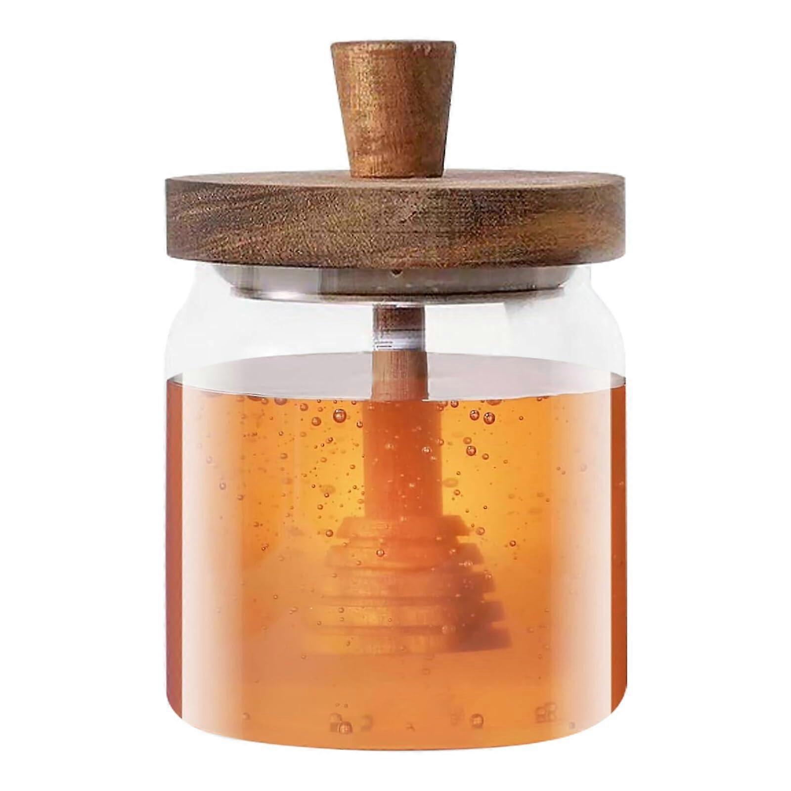 Honey jar, honey jar with wooden spoon, honey dispenser, acacia honey jar with lid (1 piece, transparent)