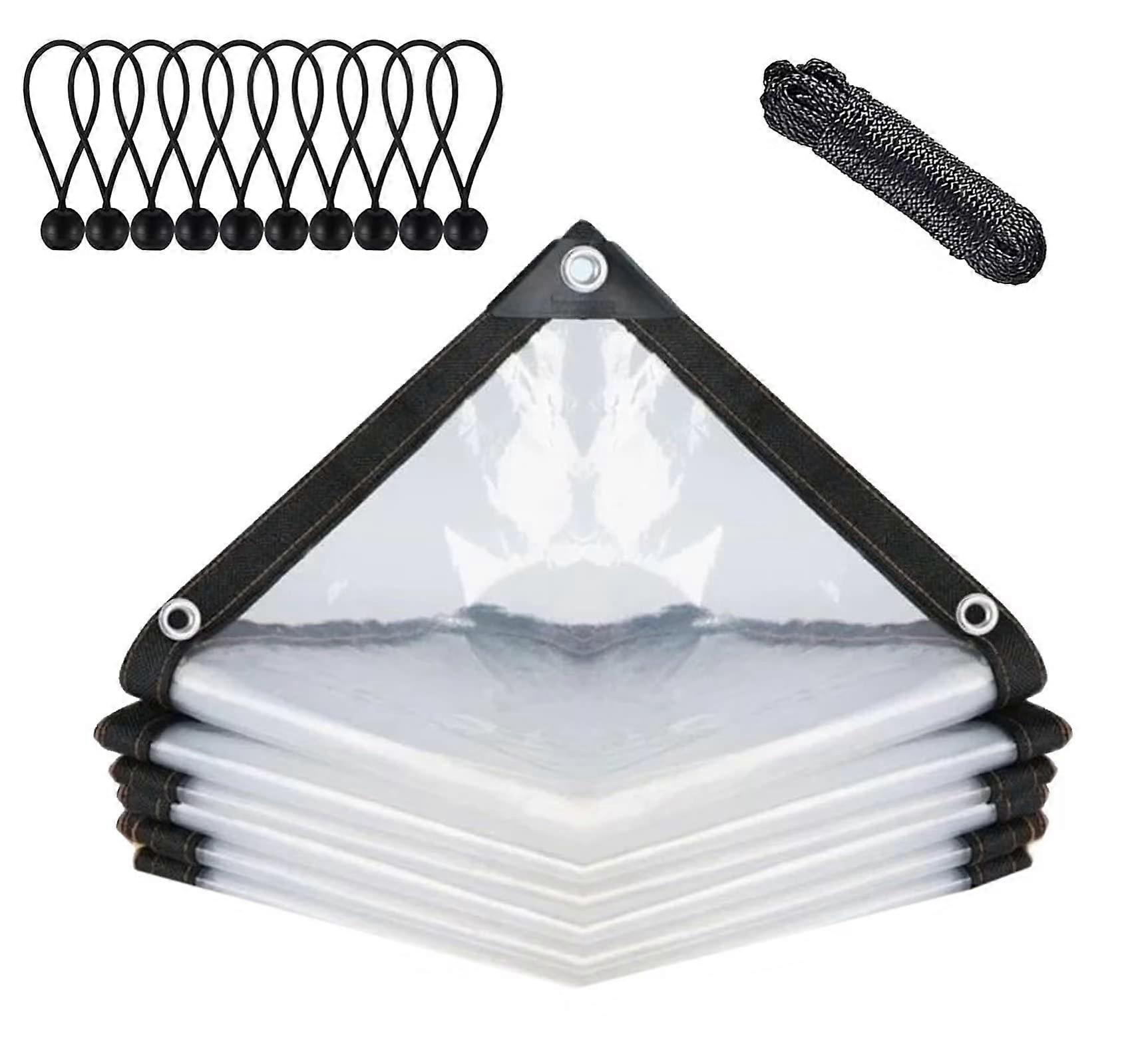 Trap Durability: To enhance durability, our tarp is made of high-quality, durable polyethylene, which is insulated, lightweight, foldable, windproof, antioxidant, and frost-resistant. Thanks to the transparent design of the rectangular tarp, some sunlight can penetrate. Weather Protection: The tarp is waterproof and weatherproof, providing you with the best protection in all weather conditions. You can cover it in various areas to protect yourself from rain, snow, wind, and dust. This durable tarp can handle it all. It is UV, alkali, water, and weather resistant and can withstand storms and harsh outdoor weather. Transparent: With heat-sealed seams, the tarp is transparent. The advantage of this design is that you can see outside while sitting inside, and the transparent tarp on the outside does not affect the design and beauty of the building itself. Functional: Both sides of the tarp can be used. With rope and tie balls: Our transparent outdoor cover has a hole along the edge every 1 meter, allowing for easy attachment and removal. It also securely fastens the tarp. The thick corners make it easy to secure, and each corner ensures the polyethylene is waterproof. The fabric is easy to tie and secure. Build "tents" for camping, trade shows, and other outdoor activities. Multi-purpose: Use it to cover your truck, car, motorcycle, roof, garden, cabin, patio furniture, and children's pool. Use it for camping to protect the tent floor from stones and moisture, and for picnics.