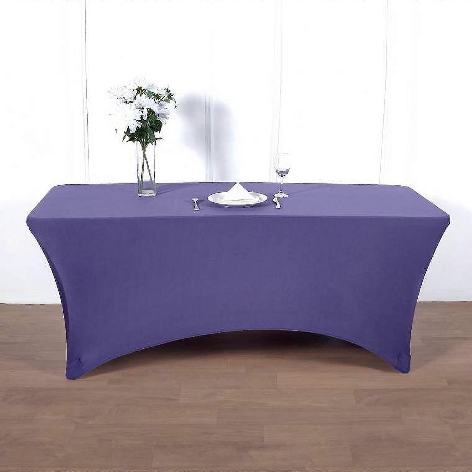 BalsaCircle 8 Feet Rectangular Spandex Fitted Party Wedding Tablecloth Purple