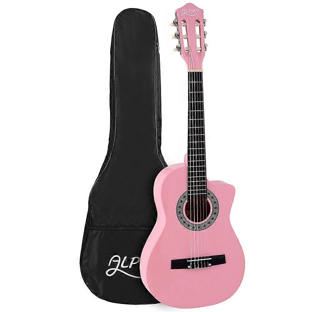 Alpha 34 Inch Classical Guitar Wooden Body Nylon String Beginner Kids Gift Pink Acoustic Guitars