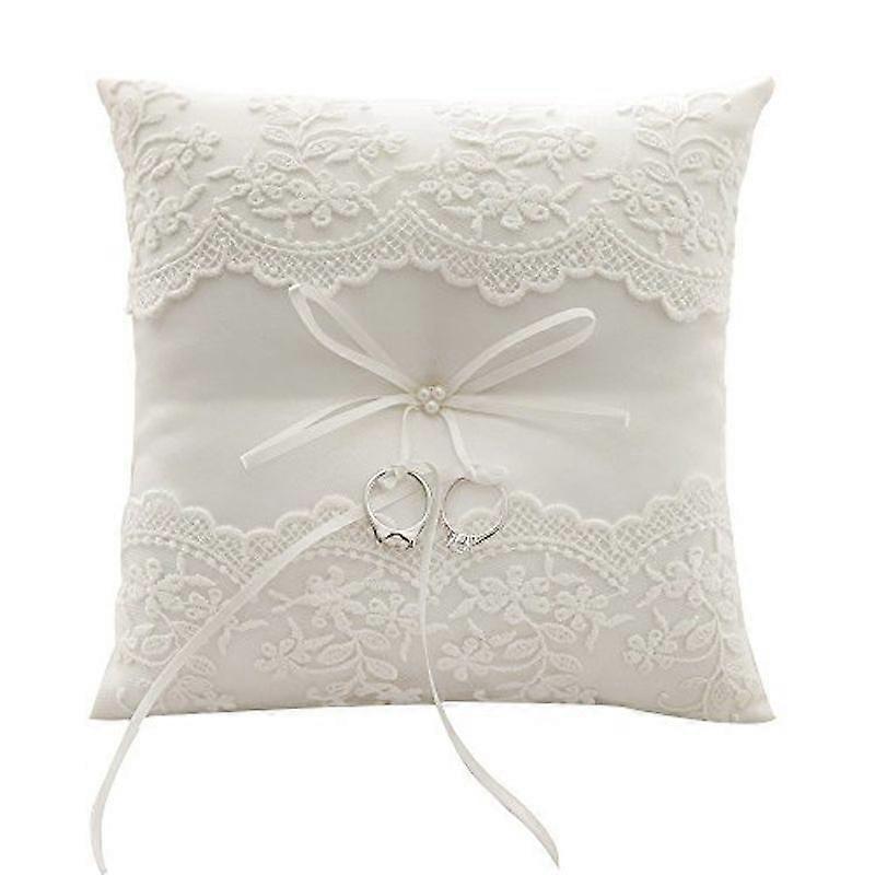 Luxora Lace Wedding Ring Pillow Pearl Cushion Bearer 8.26 Inch