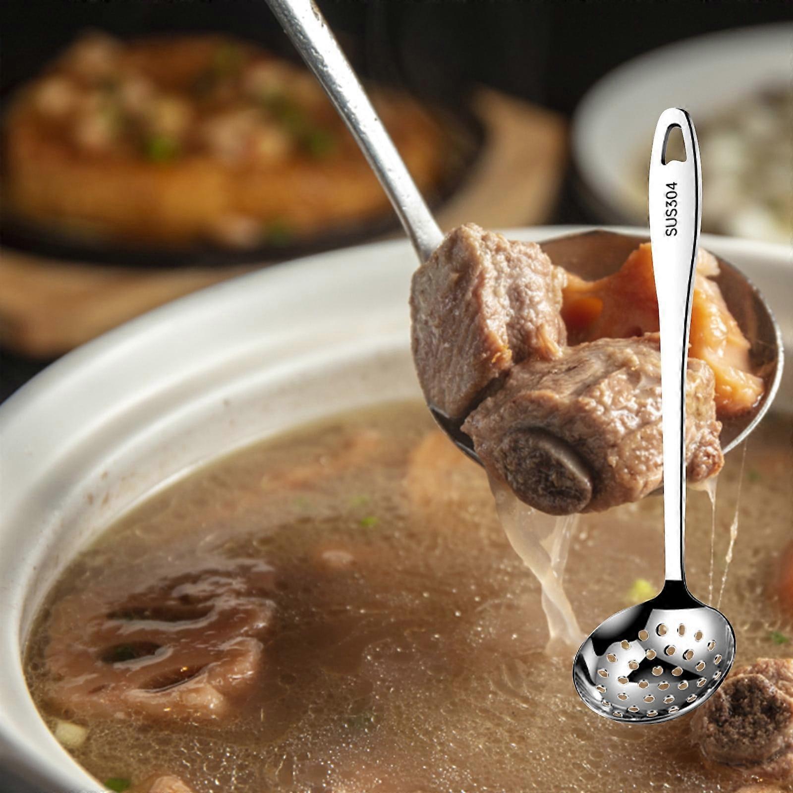 Stainless Steel Soup Ladle, Rustproof & Heat Resistant 304 Spoon with Ergonomic Handle for Kitchen Cooking