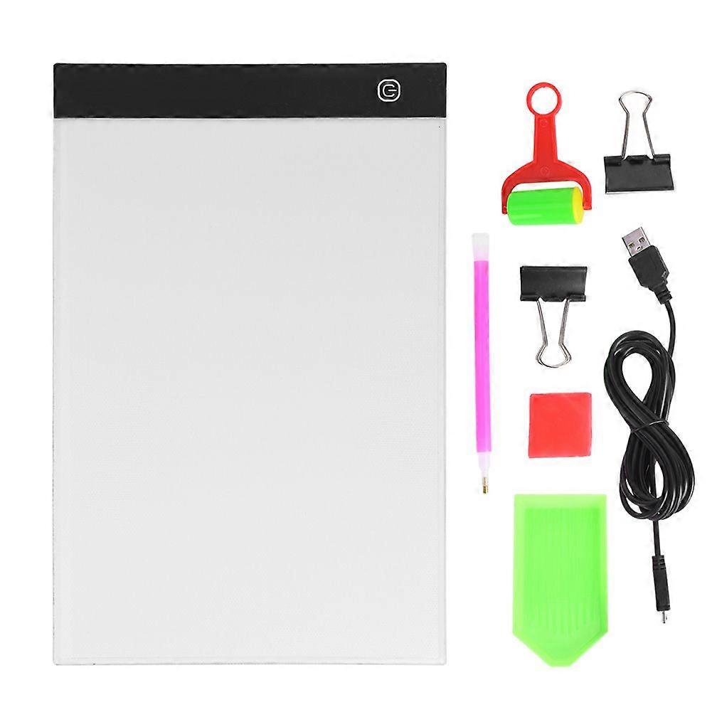 Welcome to our store! 1. Three-level dimming or stepless dimming with memory function. 2. High-transparency acrylic panel with high tenacity and durability. 3. With a magnet, lightweight and thin, portable and compact in size, convenient to carry. 4. Supports inch light scales for easier and more convenient use. 5. High brightness, can pass through 300g watercolor paper, can meet a variety of usage needs. Condition: 100% Brand New Item Type: Diamond Painting Light Pad Color: Black Frame + White Material: Acrylic + PC + ABS Dimming Mode: Stepless Dimming, with Memory Function Line Length: Approx. 2 m / 6.6 ft Voltage: 100-240 V Waterproof rating: IP65 Brightness: 500LX 1 x LED Notepad1 x Data Cable2 x Clips1 x Roll 1 x Glue1 x Tray1 x Pen