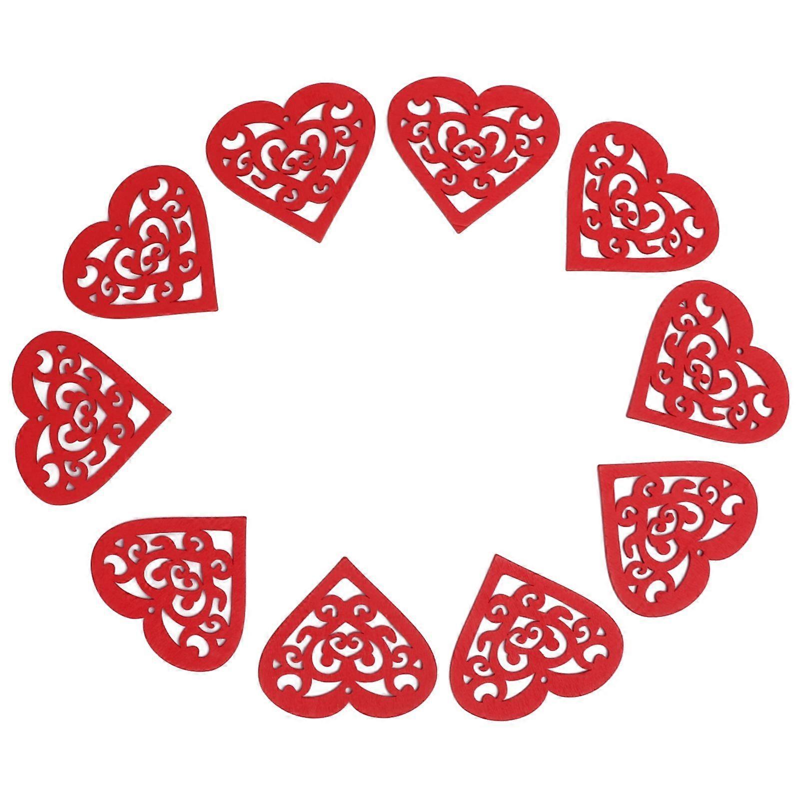 10 durable, 80mm wood chip pendants, carved, hollow, heart-shaped, for wedding decoration.
