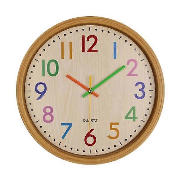 12 inch living room creative color wood grain wall clock quartz clock classroom children personality wall clock