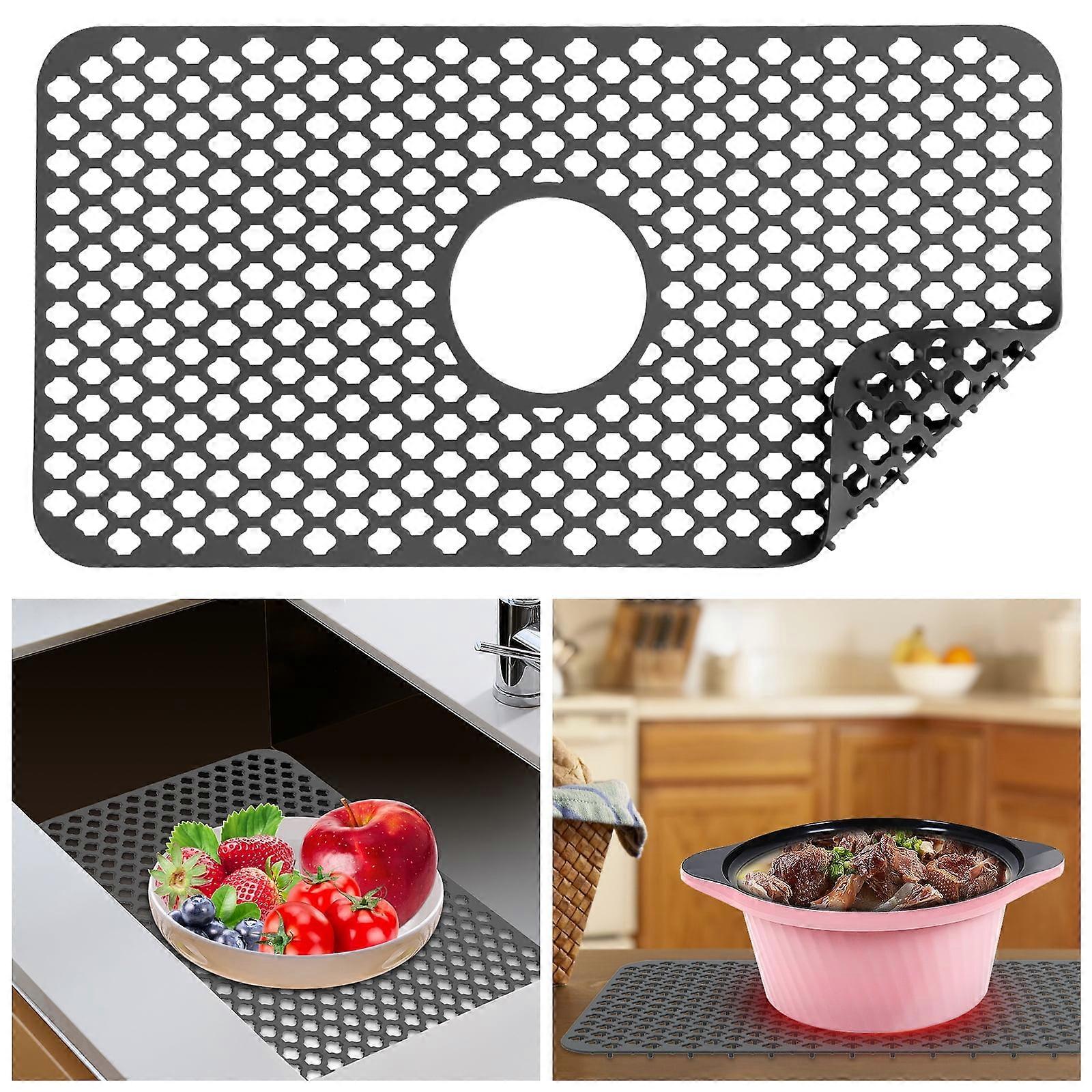 Grusce Silicone Sink Protector 24.8''x13'' for Kitchen Sink, compatible with stainless steel sinks, Non-Slip Heat-Resistant Mat with Drain