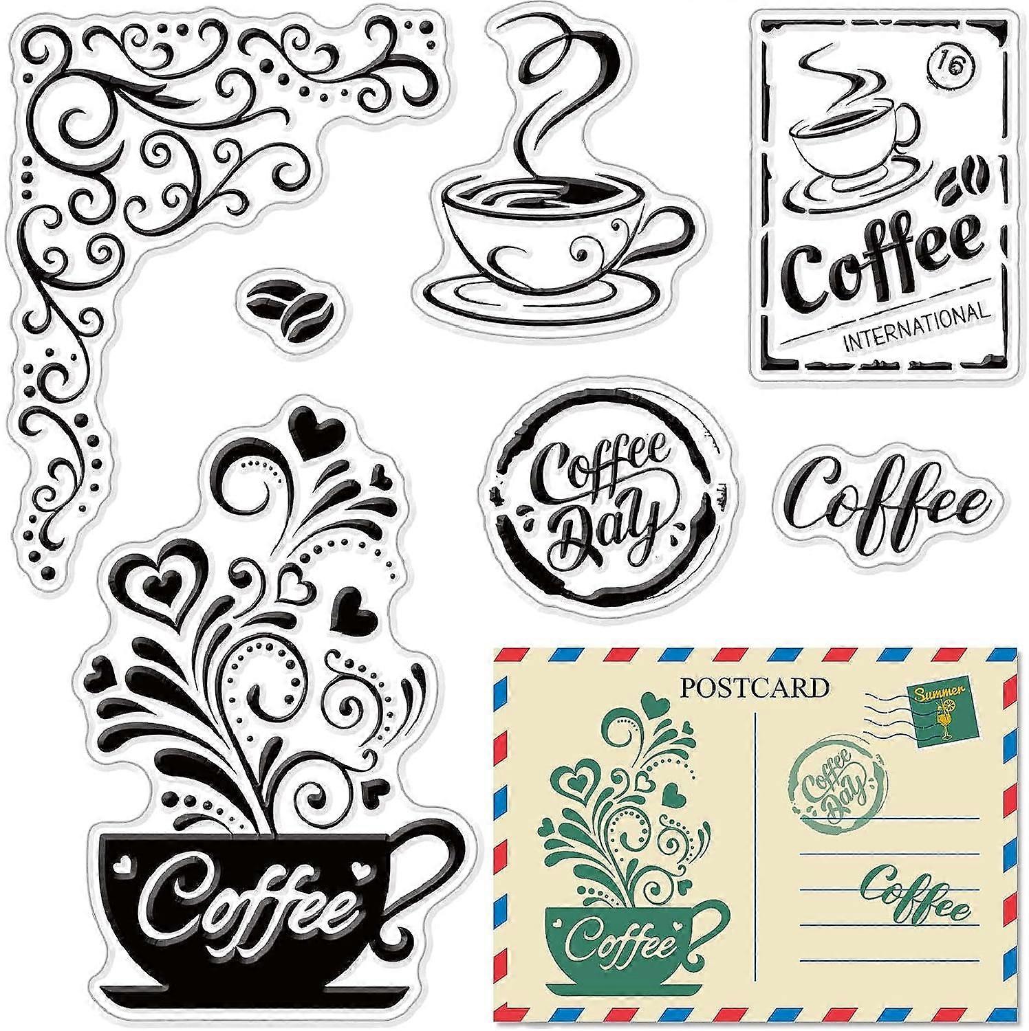 Coffee Clear Rubber Stamps Vintage Iron Orchid Postcard Cups Flowers Retro Transparent Silicone Stamp for DIY Card Making Scrapbooking Compatible