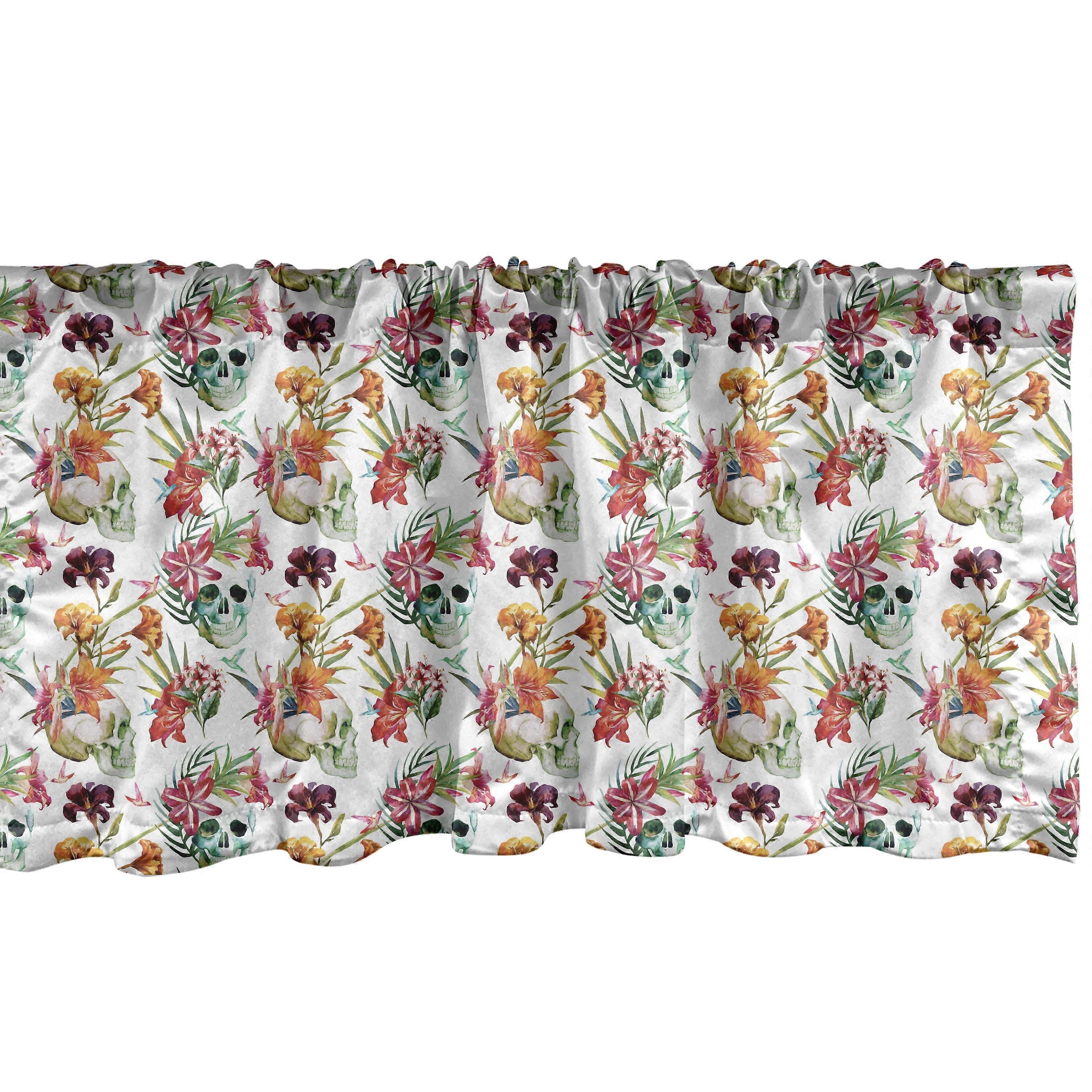 Ambesonne Floral Window Valance, Lilies Blossoms Skull, 42" x 12", Pink Orange Green