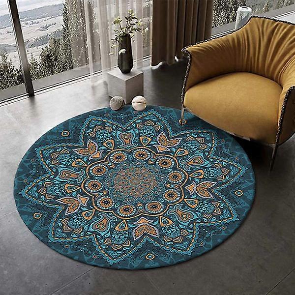 Round Area Rug Mandala Rugs for Bedroom Bathroom Washed Non-Slip Circle Floor Mats Chic Bohemian Home Decor Rugs - Style 10 160*160cm