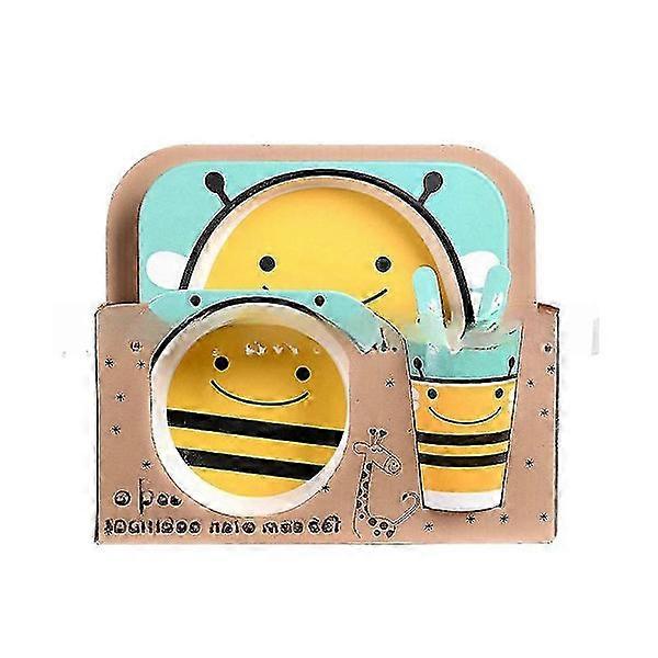 Creative New Bamboo Fiber Children's Dinnerware Set Five Piece Set Preschool Baby bee Five.piece.set.with.box