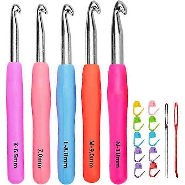 Crochet Hooks Set with Ergonomic Grip Soft Handle Aluminum Crochet Hook - Xin Size 6.5 mm 7.0 mm 8.0 mm 9.0 mm 10.0 mm