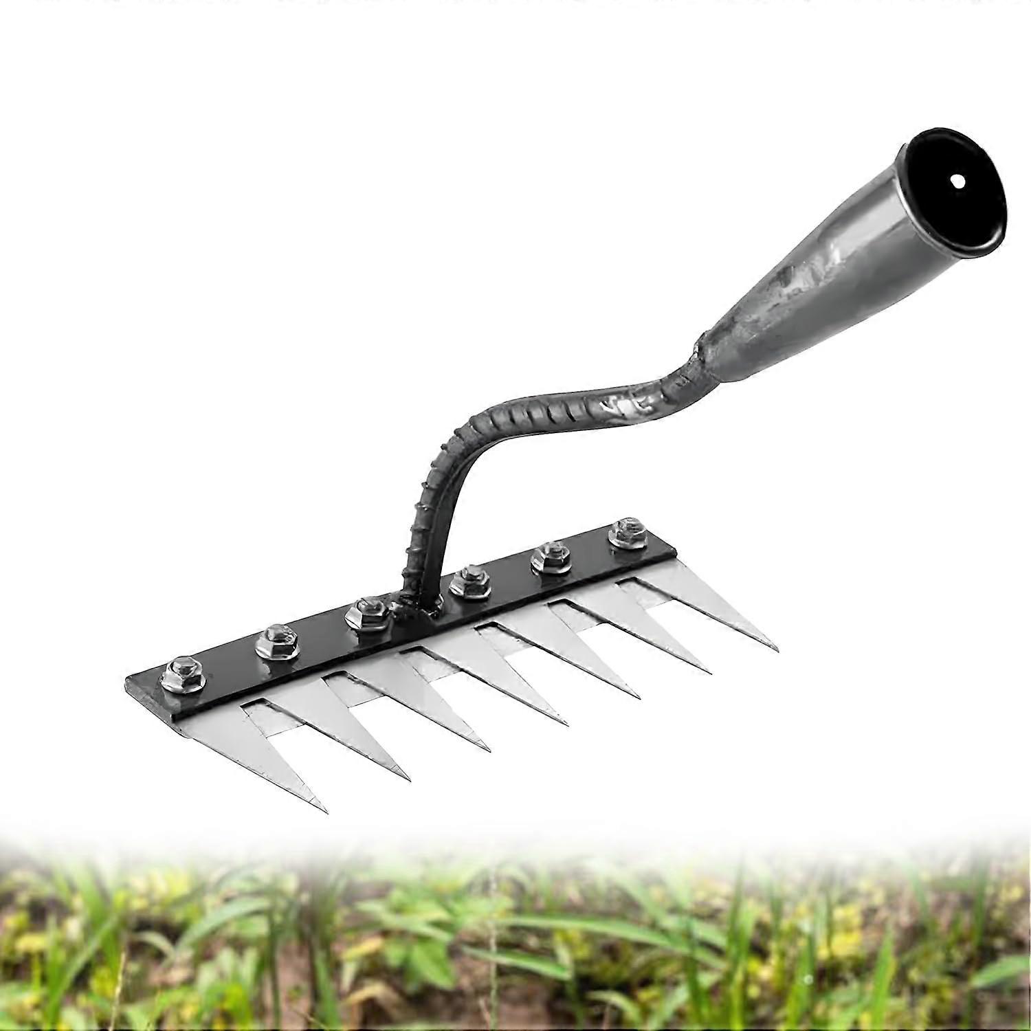 Garden Weeding Rake 7 Teeth Carbon Steel Weed Puller Tool for Fast Weed Removal and Lawn Care