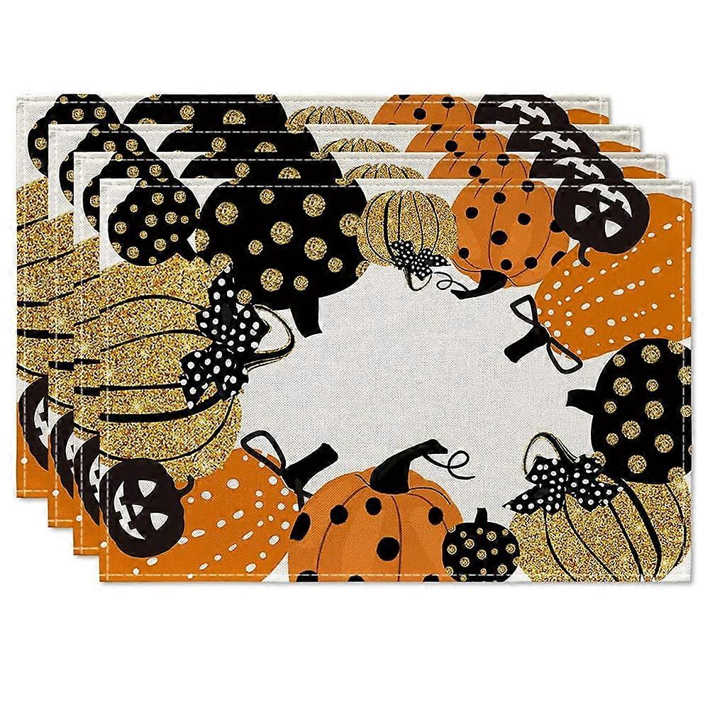 Halloween Placemats Set of 4, 12x18inch, Washable, Happy Halloween Kitchen Decor, Trick or Treat Table Mats, Gnome & Pumpkin Design