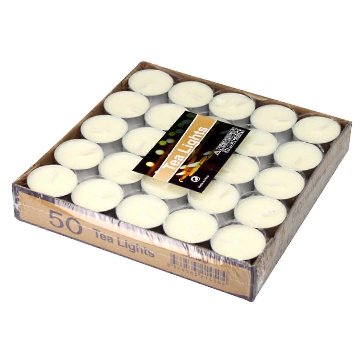 50pcs White Tea Light Candles Smokeless Paraffin Wax Long Burn for Weddings Parties Home Decor