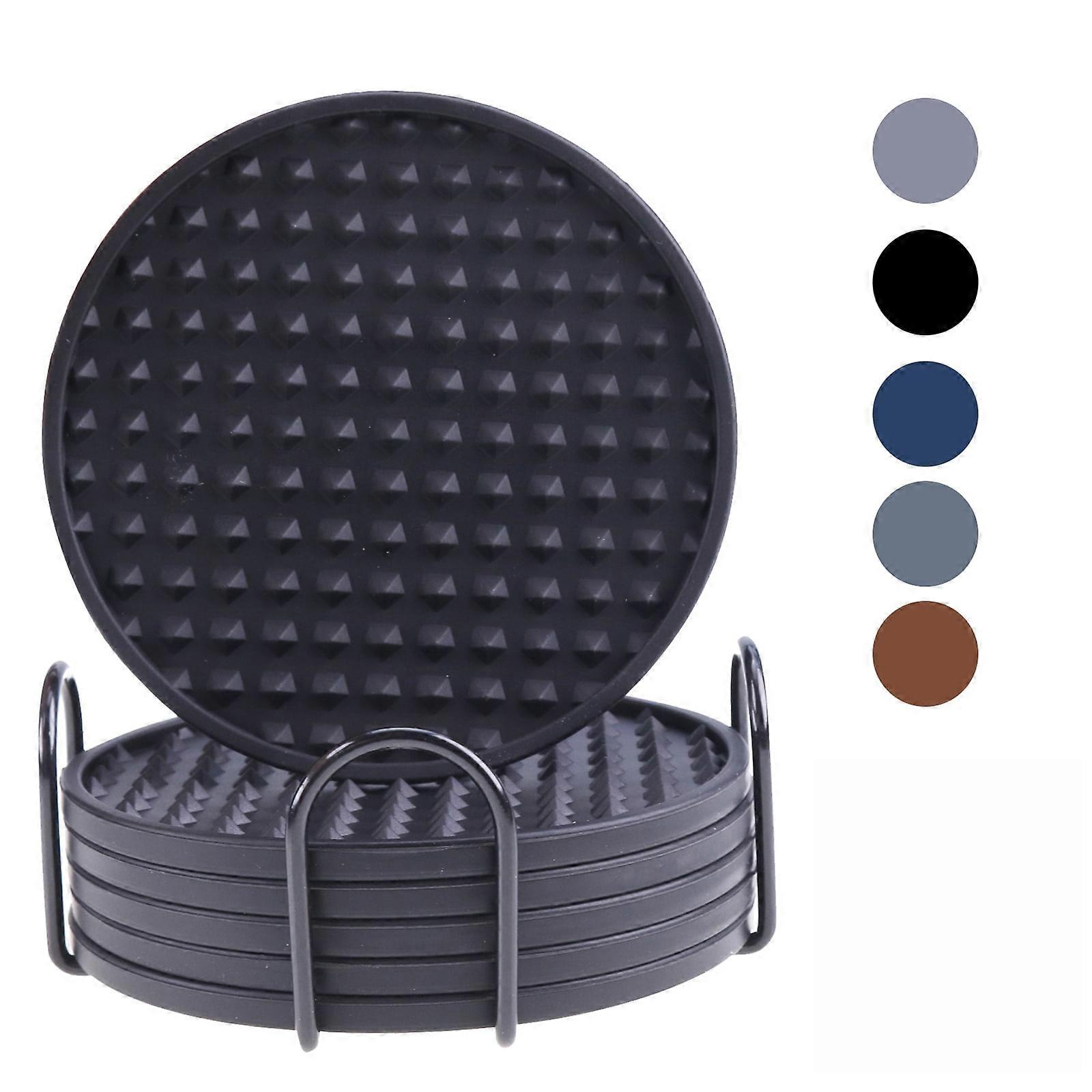 Hvacstar Coasters for Drinks, Non-Slip Deep Groove Cup Mat, Heat Resistant Coasters for Coffee Table, Set of 6(Black)