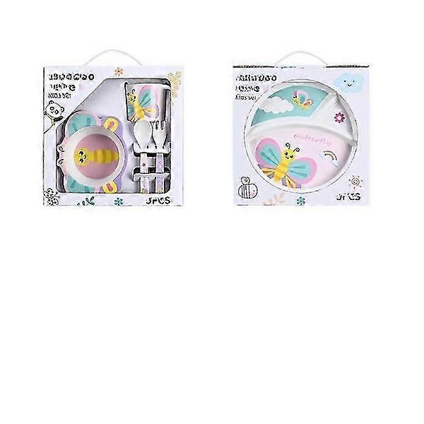 Creative New Bamboo Fiber Children's Dinnerware Set Five Piece Set Preschool Baby Butterfly.Gift.Box Five.piece.set.with.box
