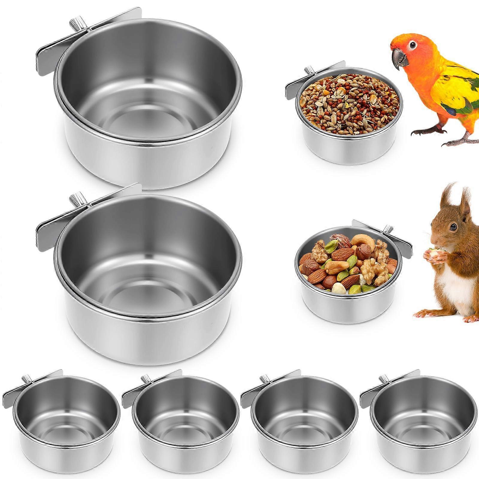 Stainless Steel Bird Feeding Bowls – Safe, Secure, and Easy to Clean Key Features and Benefits: FoodGrade Safety: Crafted from quality 304 stainless steel, these bowls are completely safe for all pet birds, including sensitive species such as cockatiels and lovebirds. The material resists corrosion and ensures fresh, uncontaminated food and drinking water. Stable Cage Mounting: Equipped with an adjustable clamp mechanism, the holder securely fits cage bars ranging from 0.2 to 0.5 inches thick. A springloaded holder with screwtightened tension keeps bowls firmly in place, preventing spills and detachment even during active perching by parakeets, conures, or similar birds. Versatile DualFunction Design: Each 3.9inch diameter by 2inch height bowl serves as both a food dish and water cup. The shallow 1.5inch depth is for small beaks, minimizing drowning risks while accommodating seeds, pellets, and fresh water in compact cage setups. Effortless Cleaning: The smooth stainless steel surface washes easily and resists food adhesion. These bowls can be sanitized in boiling water or a dishwasher without retaining residue, unlike porous ceramics. This reduces daily maintenance time and helps maintain a hygienic feeding environment. Use Scenarios: 1. Ideal for small bird species such as budgies, cockatiels, lovebirds, and parakeets that require safe, stable feeding stations inside their cages. 2. Suitable for owners seeking a dualpurpose feeder and water cup that efficiently uses limited cage space. 3. for households where quick, thorough cleaning is important to prevent contamination and maintain bird health. Specifications: Material: Foodgrade 304 stainless steel Bowl Size: 3.9 inches diameter x 2 inches height Bowl Depth: 1.5 inches Cage Compatibility: Fits bars 0.2 to 0.5 inches thick Function: Food dish and water cup combined Mount Type: Adjustable clamp with springloaded holder and screwtightened tension This product offers a safe, practical, and durable feeding solution for pet bird owners who want to ensure stability, ease of cleaning, and longterm reliability in their cages.
