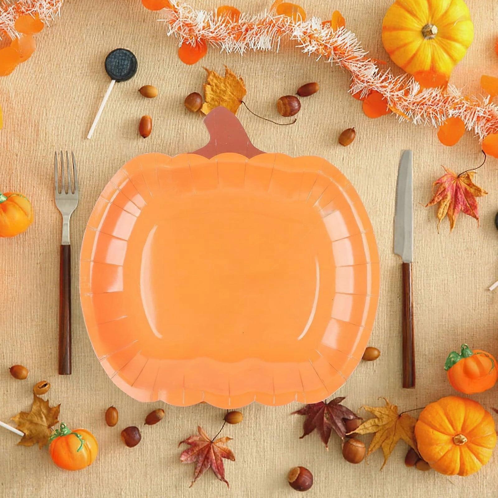 Honeeladyy 20Pcs 9" Halloween Paper Plates, Orange Pumpkin Design, Fall Harvest Theme for Thanksgiving, Birthday, Wedding Party, Holiday Dinner