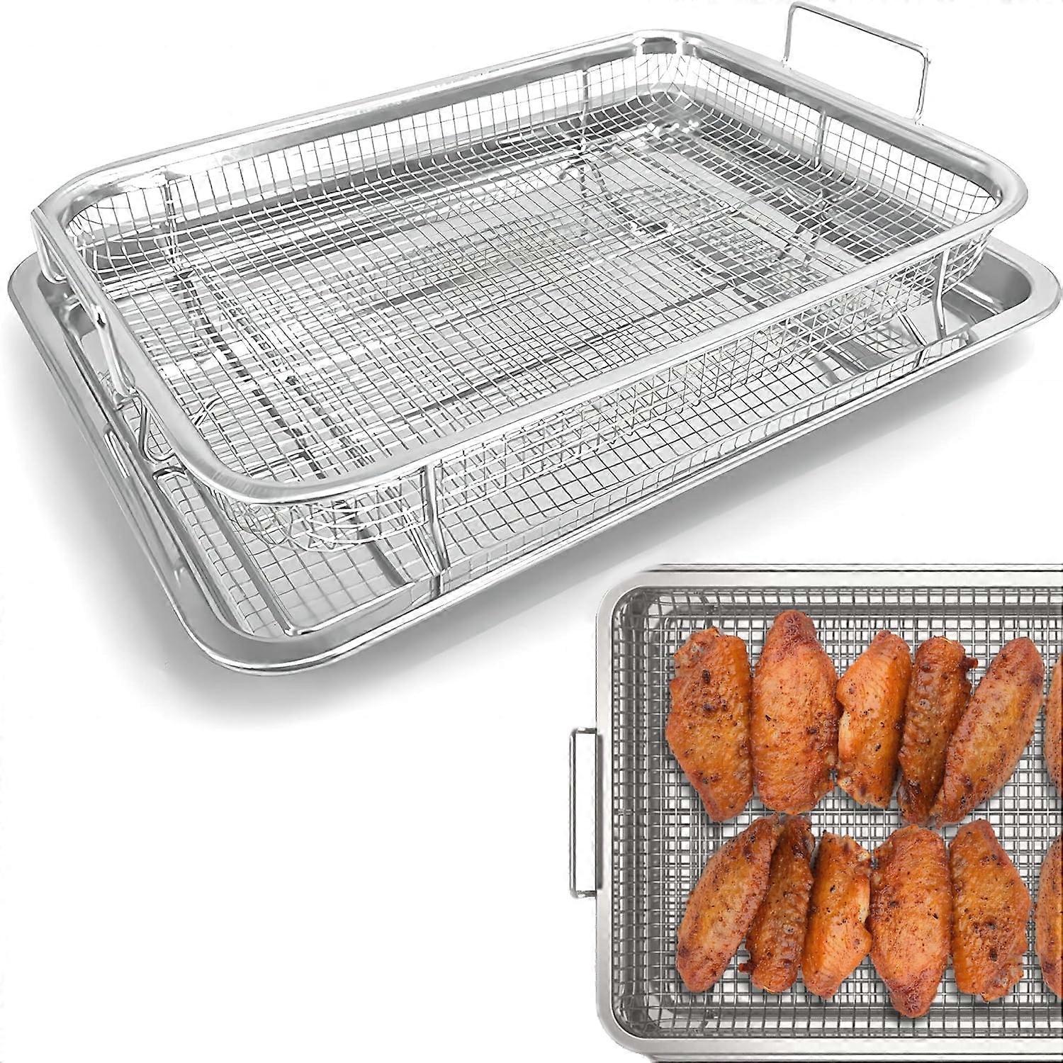 GoXteam Air Fryer Basket for Oven - Stainless Steel Baking Sheet with Wire Rack, Nonstick Crisper Tray Compatible with 12.8 x 9.6 Inch