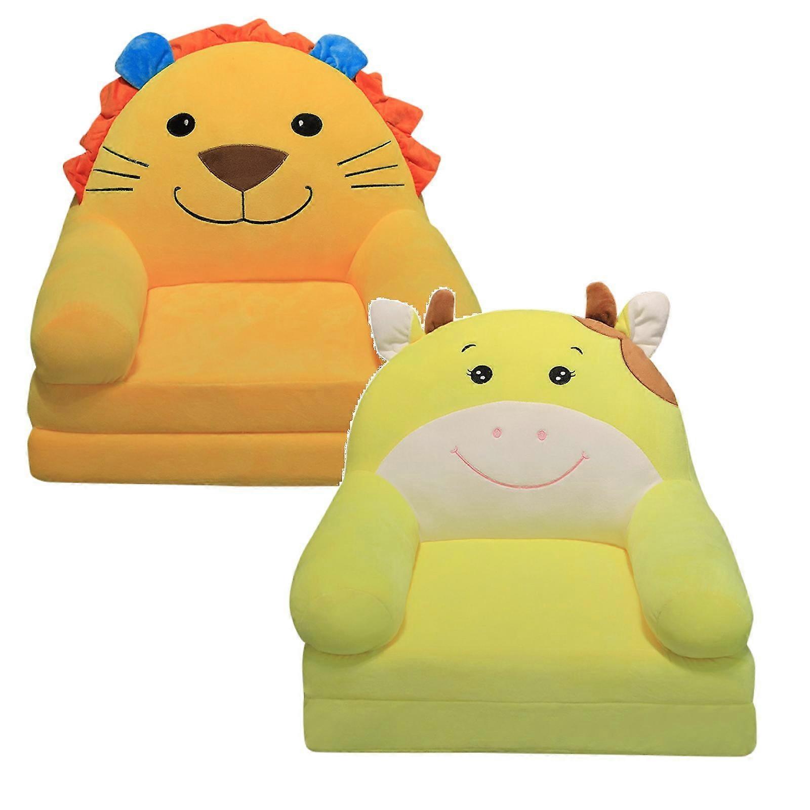 Plush Foldable Kids Sofa Cover, Compatible with 2PC Cute Cartoon Lazy Sofa, Backrest Armchair for Living Room Bedroom (Without Liner Filler)