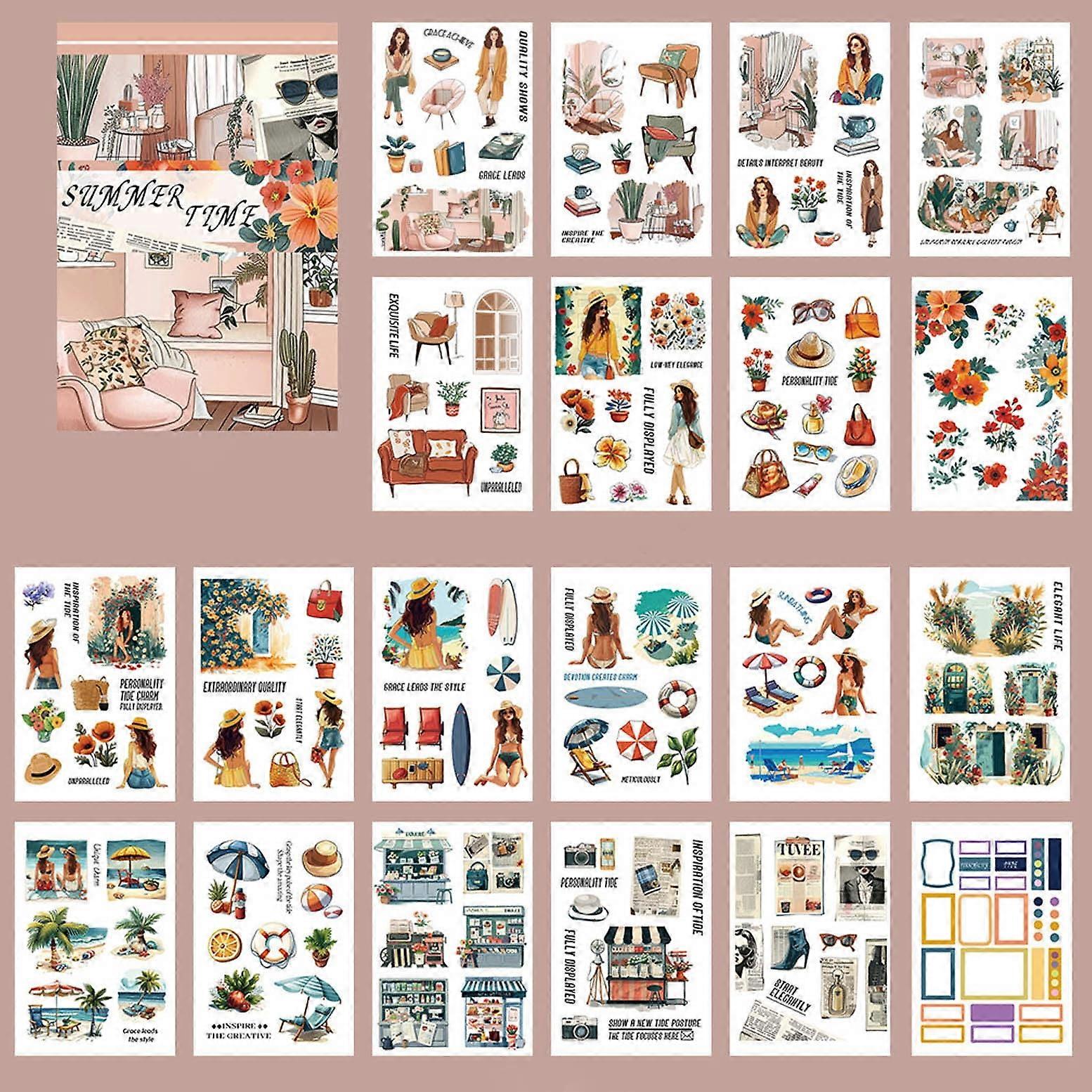 Cailmei Pre-Cut Journaling Sticker Book, 20 Sheets, Coffee, Pet, Vintage Scrapbook Stickers for Junk Journal Supplies