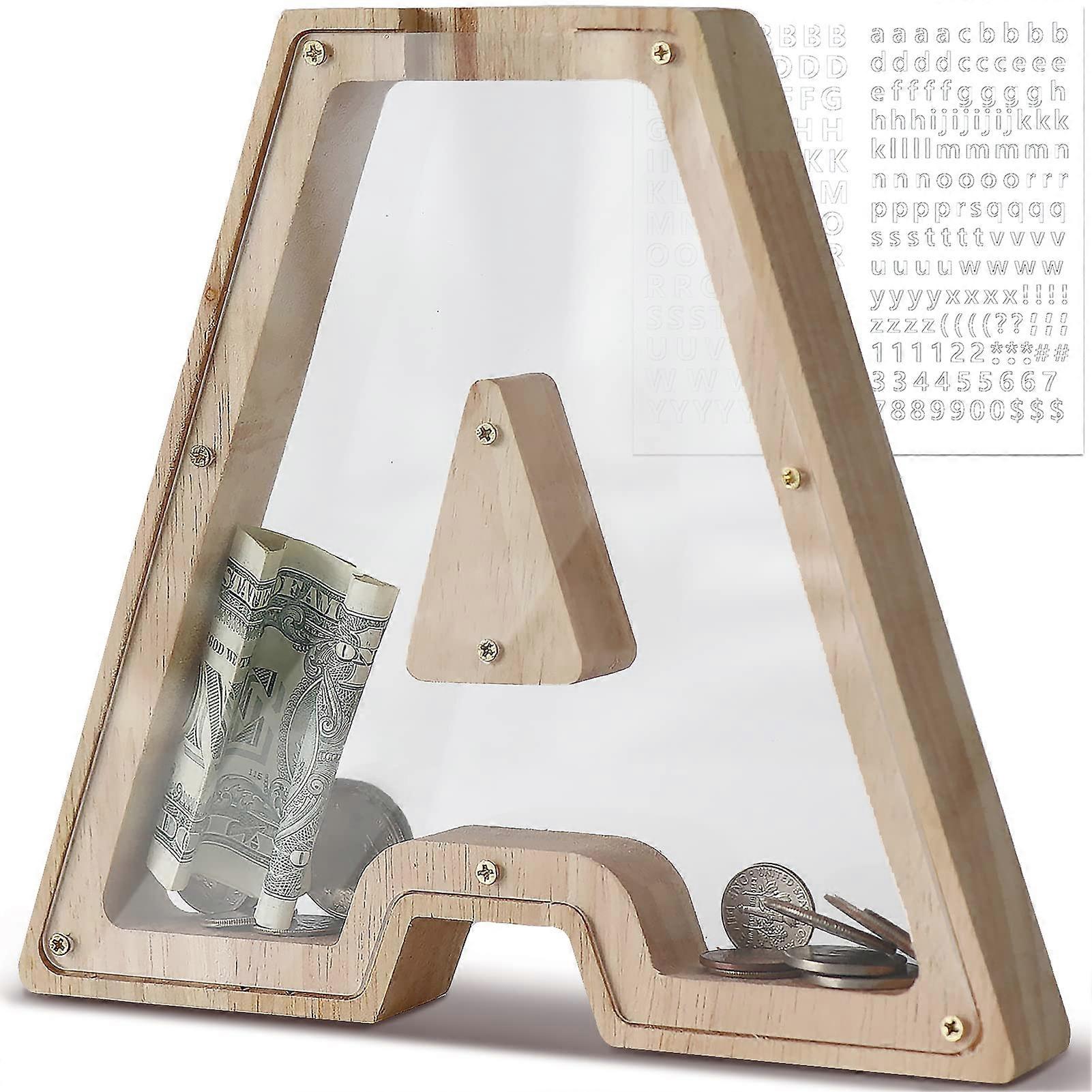 Kids Wooden Piggy Bank Letter Money Box, Save Coin Jar for Birthday Gift or Home Decor (A)