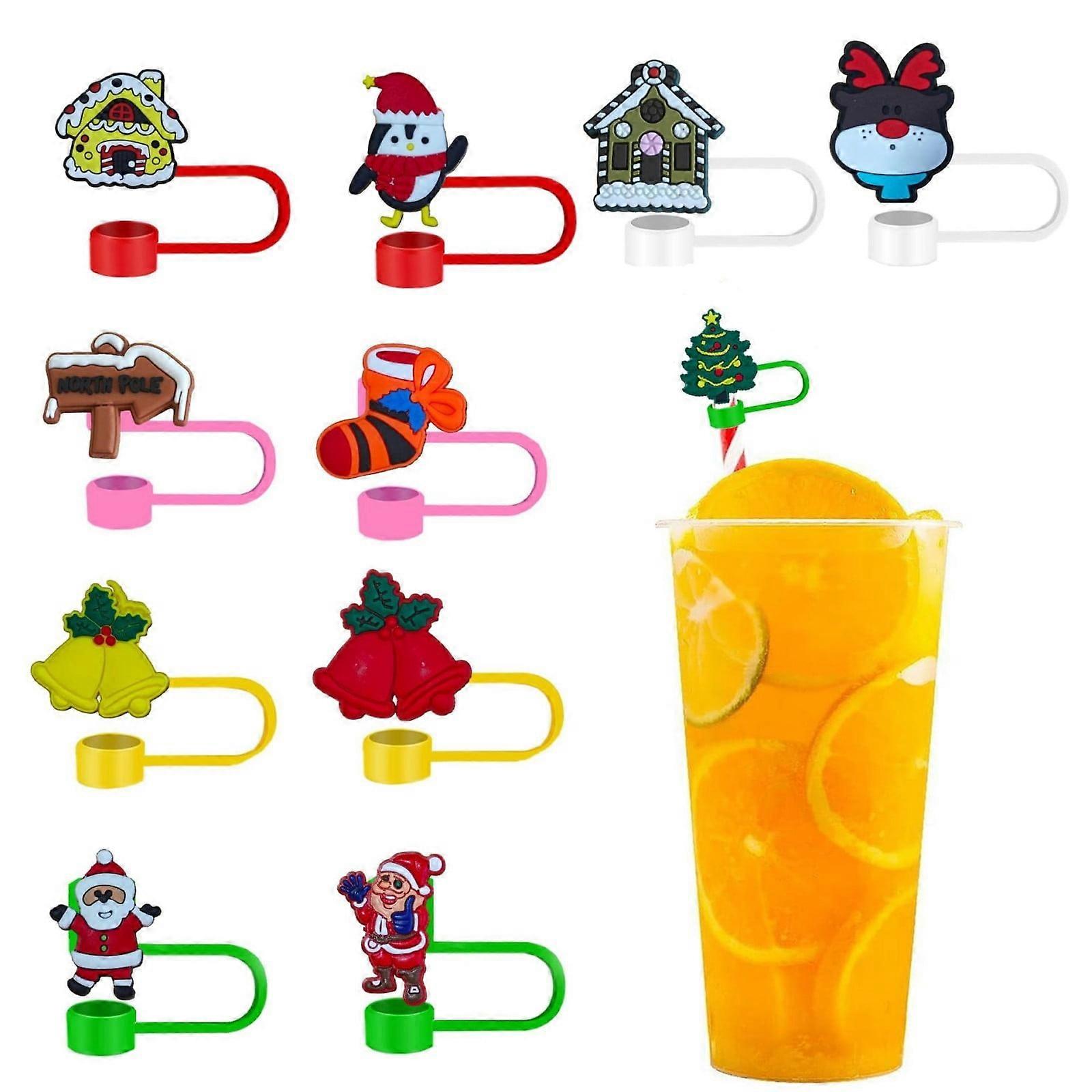 Christmas Themed Cartoon Straw Hats 8mm Pack Of 10 Festive For Drinks Umbrella for Drinks for Kids