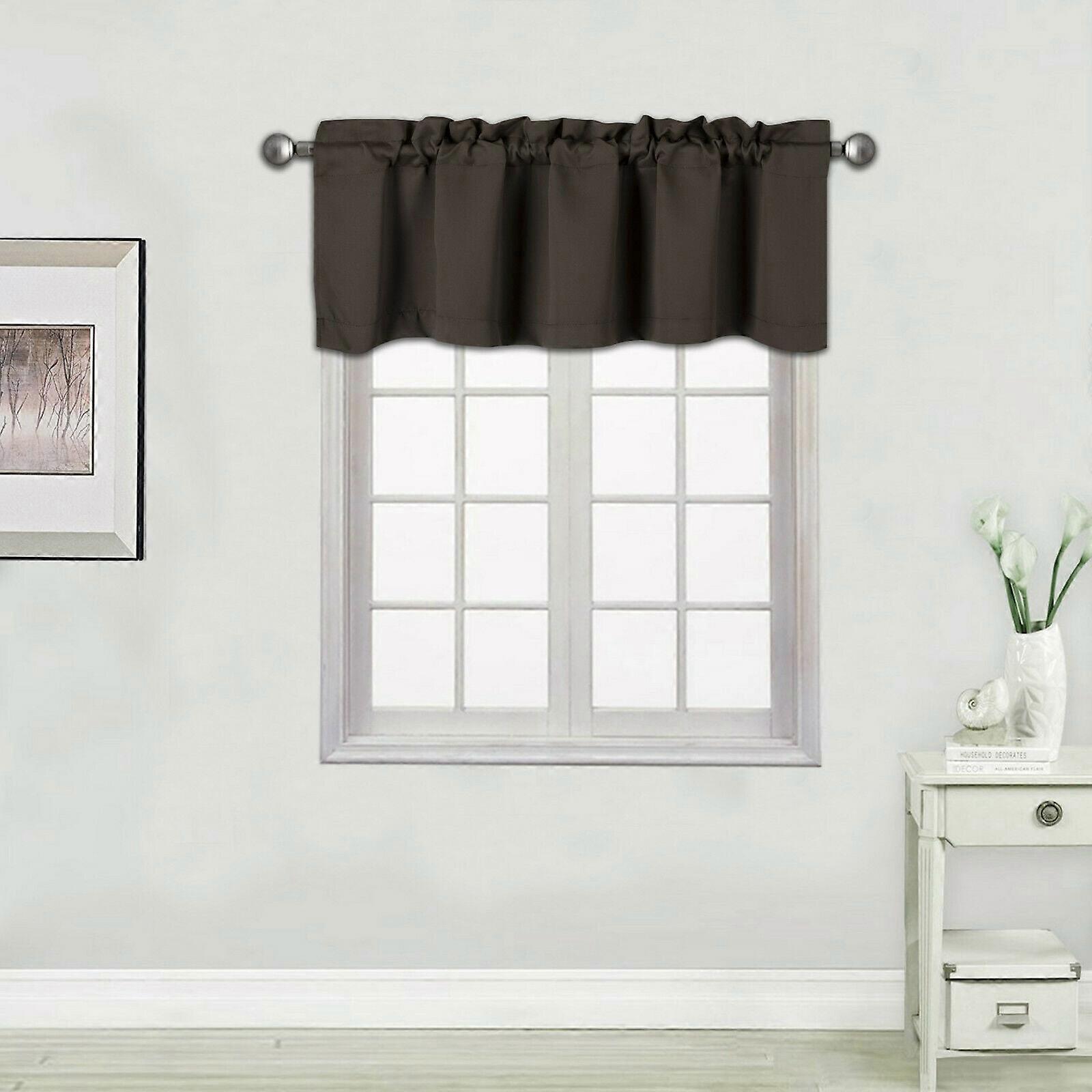 Straight Wave Valance Rod Pocket 54"x18" Brown - Blackout, Thermal Insulated, Room Darkening for Kitchen Bedroom Small Window (1 Pc)