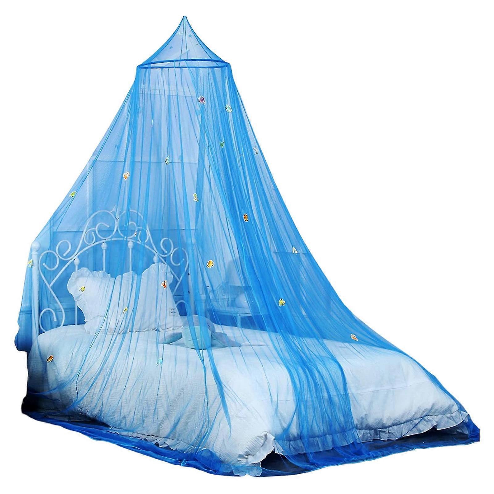 harmtty Dome Mosquito Net Easy Installation Fine Mesh Wear Resistant Stars Princess Canopy Fluorescent Bedcover Curtain for Home,Blue